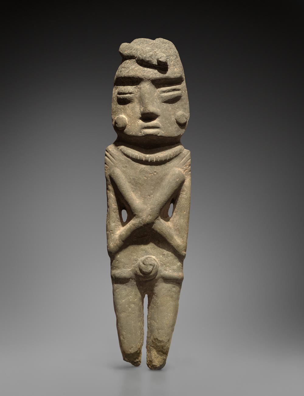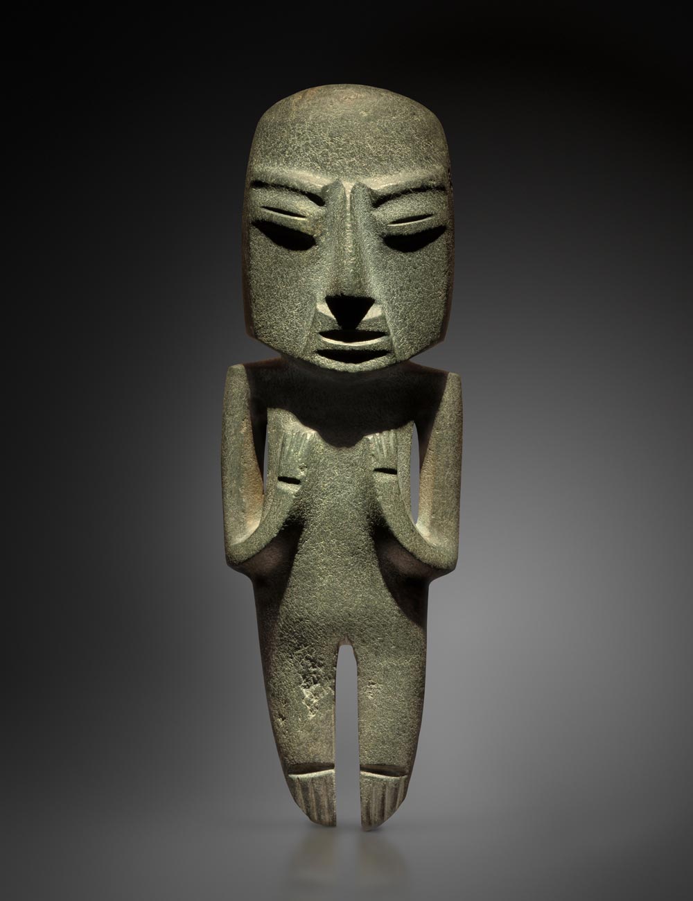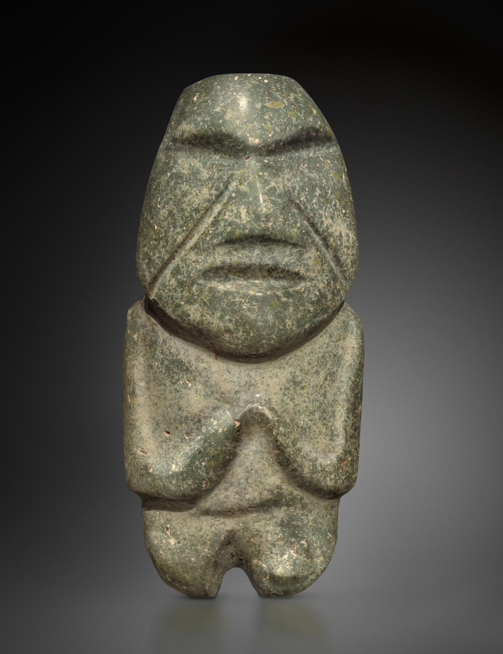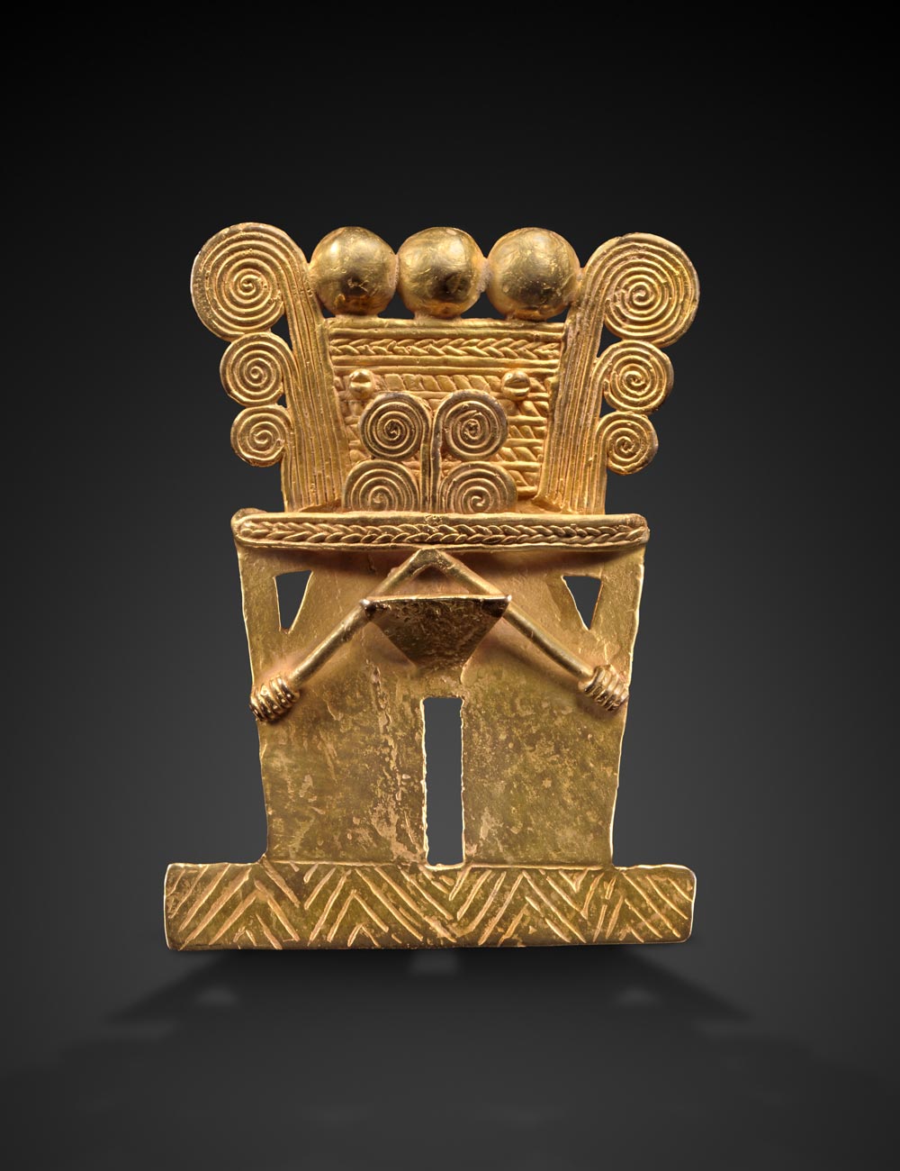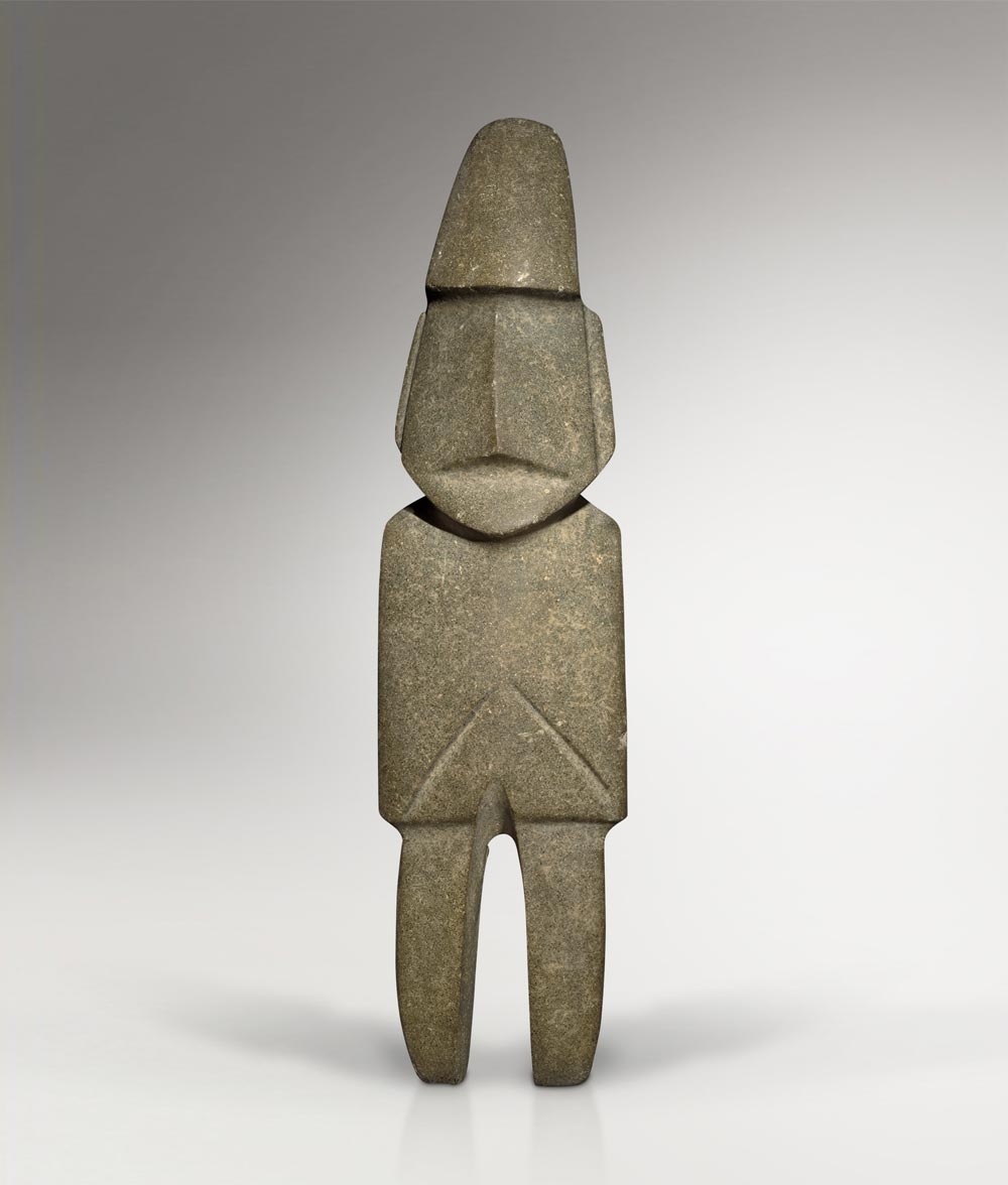 Une sélection qui embrasse un grand nombre de cultures du Mexique et des Andes. Parmi les œuvres exposées : un masque chontal, modèle de pureté et de solennité, sculpté dans une intense serpentine verte veinée, un grand excentrique maya représentant le Dieu K’awill, taillé dans une obsidienne aussi tranchante que le verre avec une technique qu’aucun tailleur contemporain n’a réussi à reproduire, un serpent à plumes aztèque en basalte, l’une des incarnations du mythique Quetzalcoatl, mais aussi un trio de masques d’Argentine rarissimes, expressifs à souhait, un superbe pectoral en or de Colombie et un poncho du Pérou aux couleurs chatoyantes, illustrant à eux deux la maîtrise atteinte dans l’orfèvrerie et l’art textile en Amérique du Sud. Un inventaire à la Prévert où l’étrange est toujours fascinant et lumineux pour peu que l’on s’y attarde.