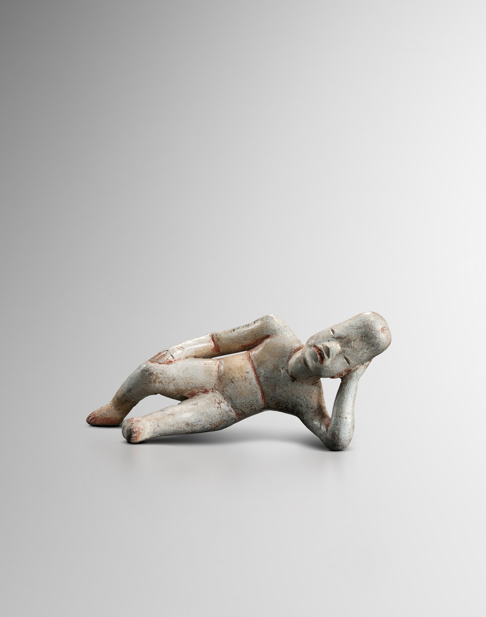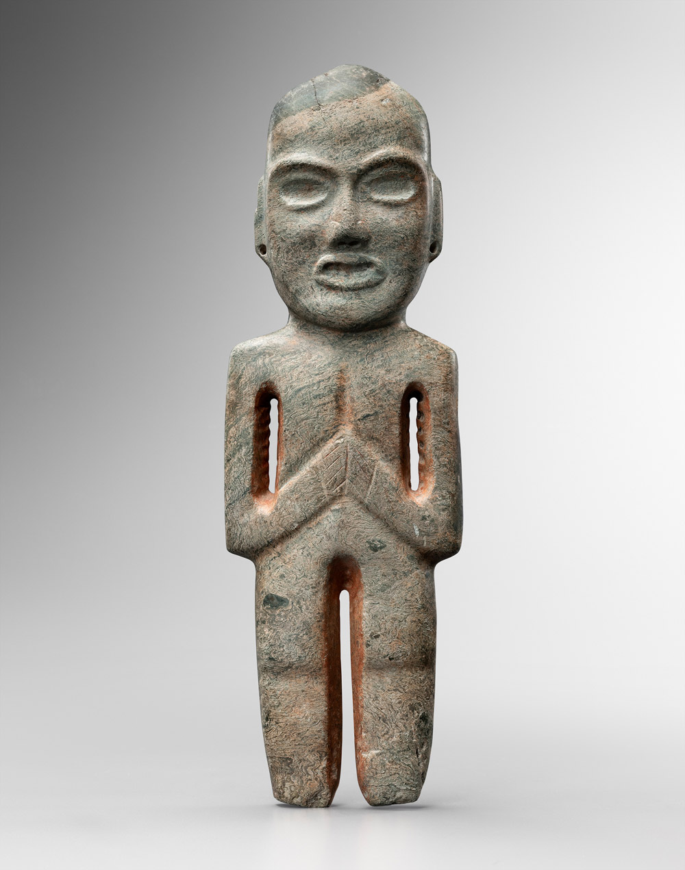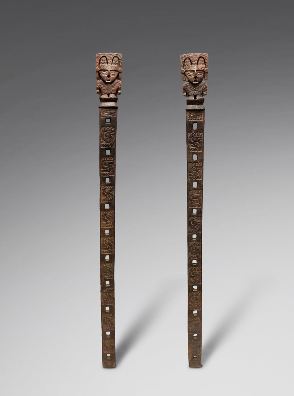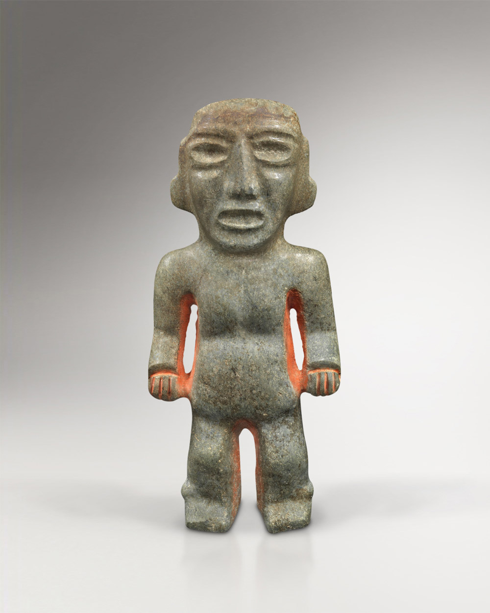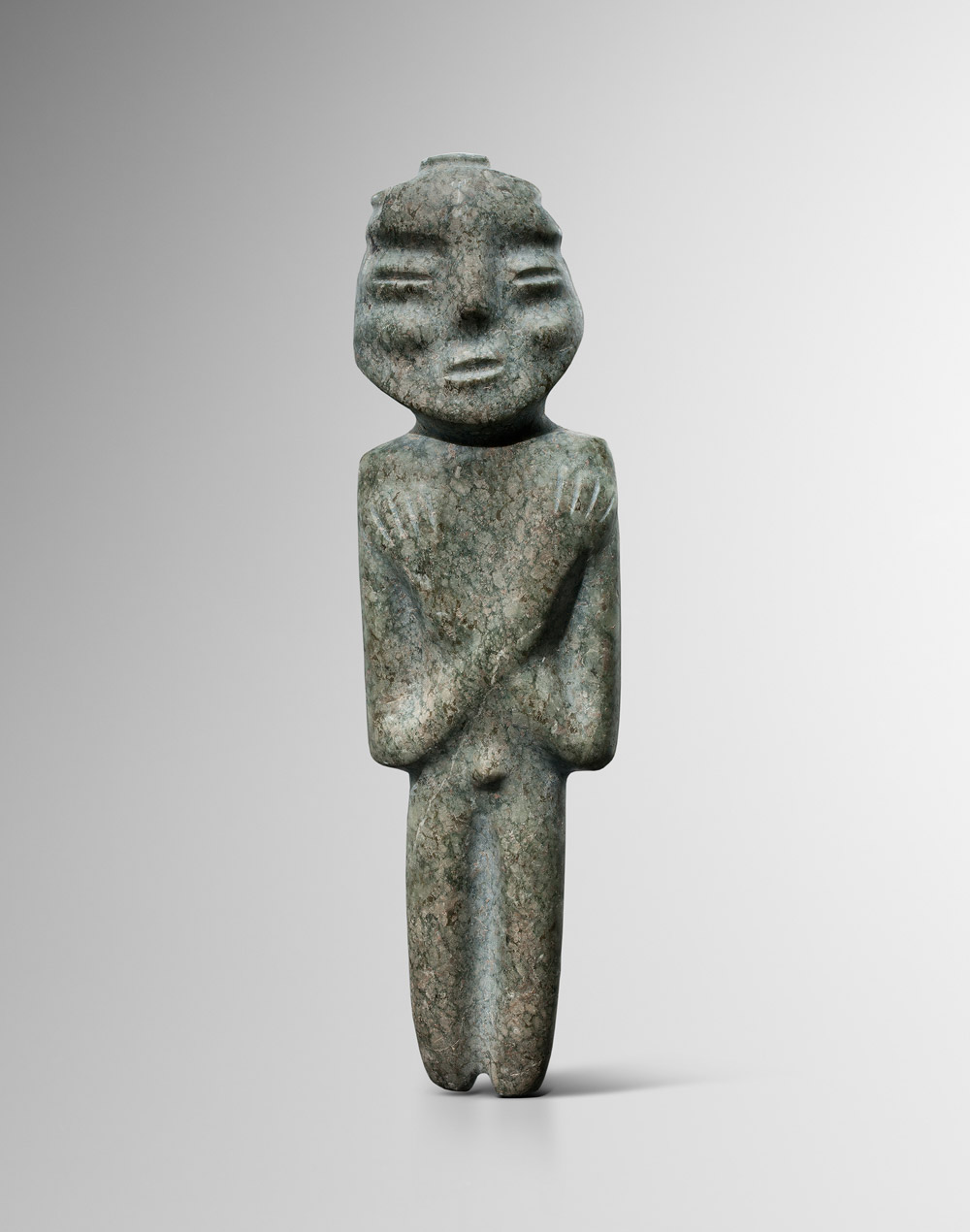 En vedette de cette édition : un époustouflant pectoral Tairona en or, de qualité muséale, provenant de Colombie et travaillé selon la technique de la fonte à la cire perdue, un poncho royal Nazca composé d’une mosaïque de plumes exotiques multicolores, quintessence de l’art textile et de l’art plumassier qui font la réputation du Pérou préhispanique et dont un exemplaire comparable se trouve au San Francisco de Young Museum, un ensemble de céramiques olmèques d’une admirable finesse provenant d’excellents ateliers, mais aussi un conteur du Jalisco, dont la taille exceptionnelle n’a d’égal que le pedigree, s’adressant avec véhémence à sa communauté comme s’il avait été figé sur le vif dans l’argile.