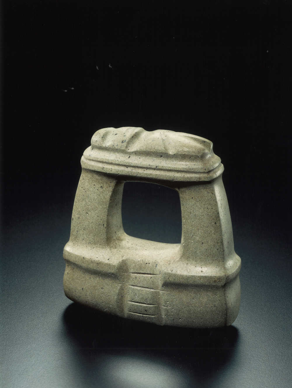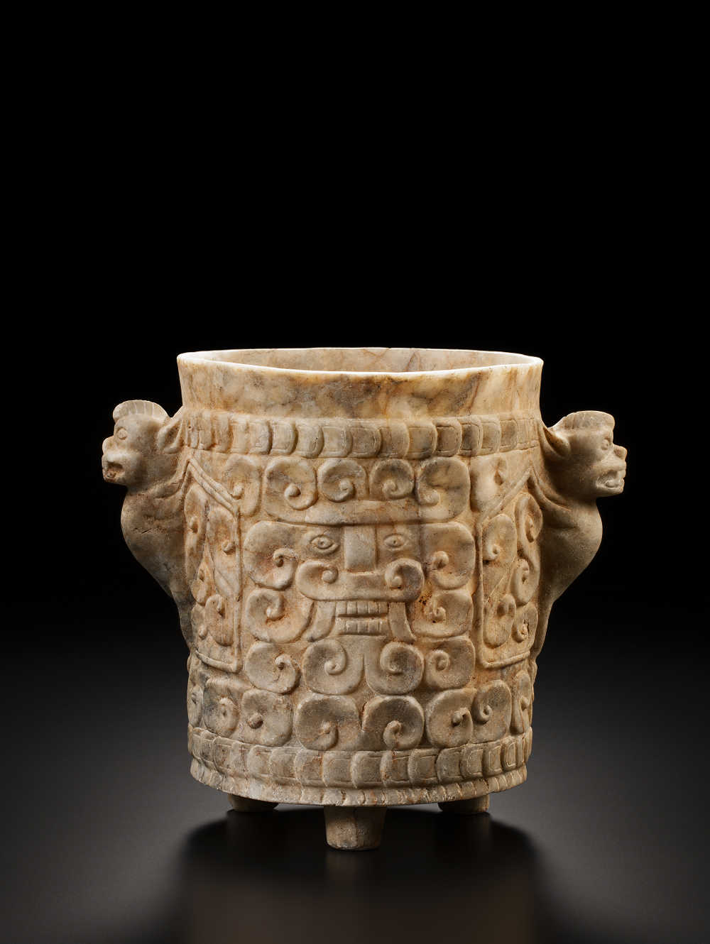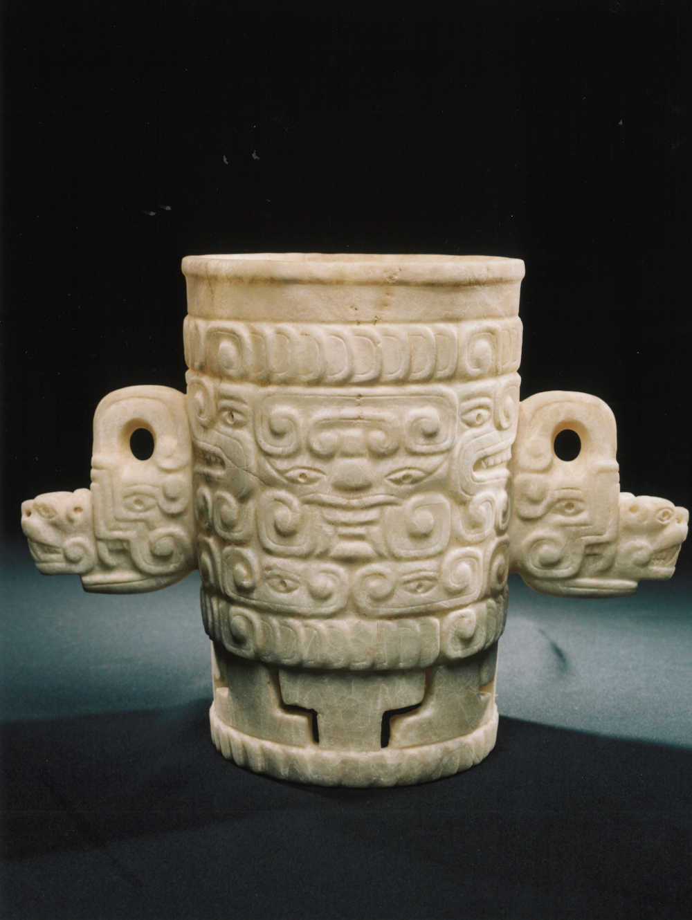Ceinture cérémonielle en forme de joug fermé sculpté avec deux profils de dragons vis-à-vis encadrant un visage humain